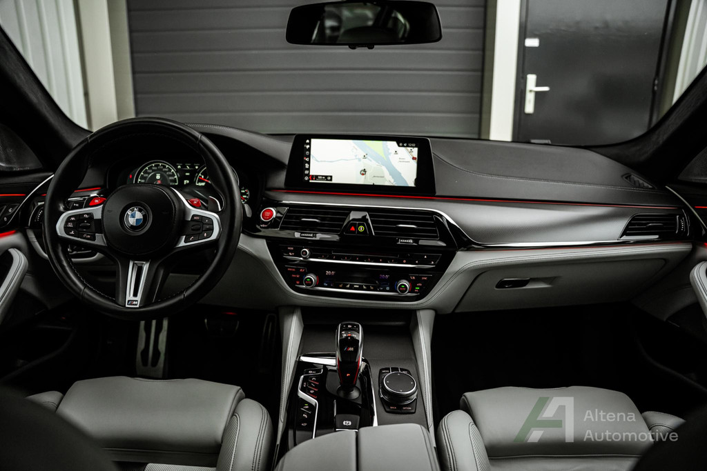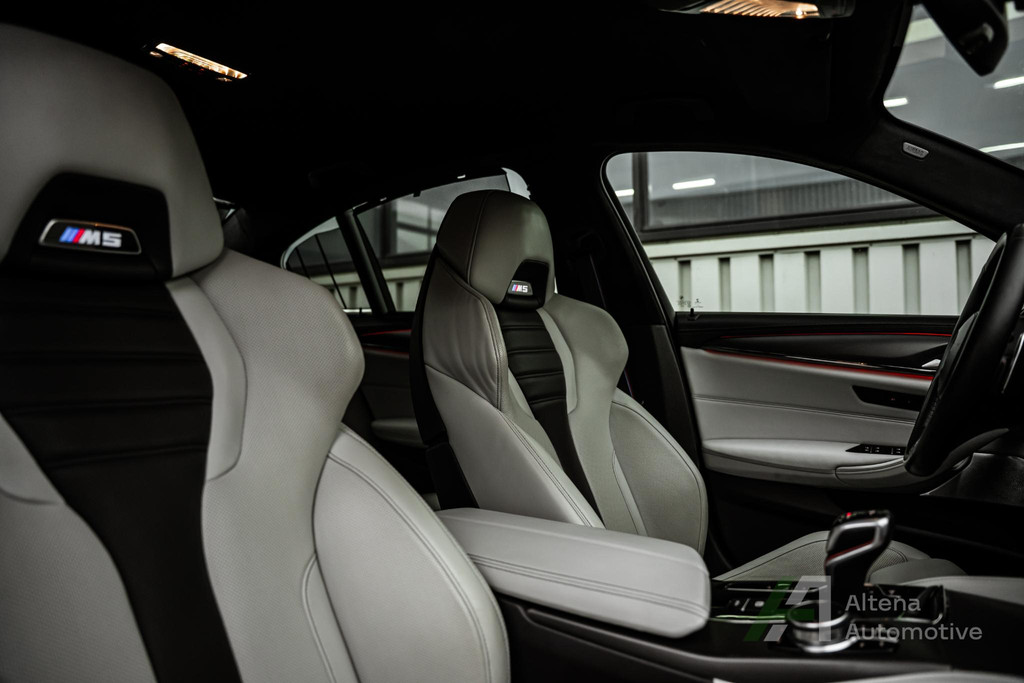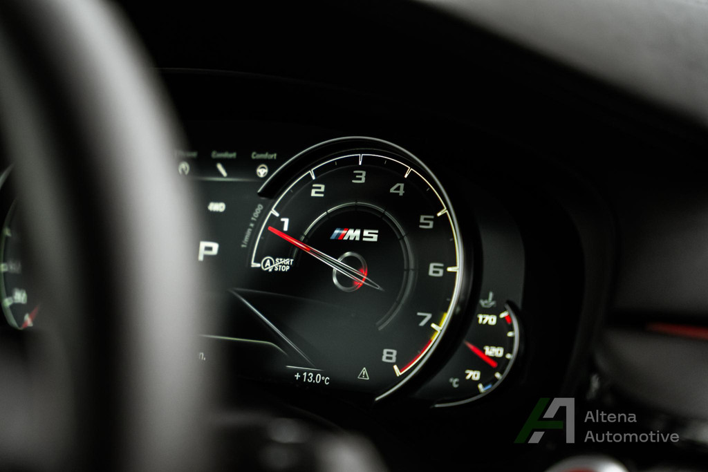 De keramische remmen geven vertrouwen op een niveau dat je normaal alleen op circuits tegenkomt. Hard gaan is één ding — hard kunnen stoppen is wat deze M5 next level maakt. Alles aan deze auto ademt precisie, kracht en absolute beheersing.