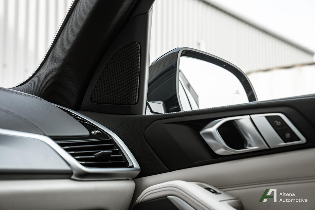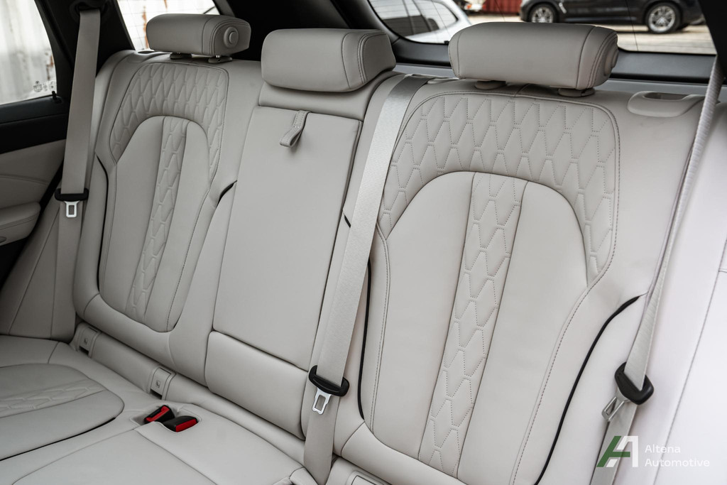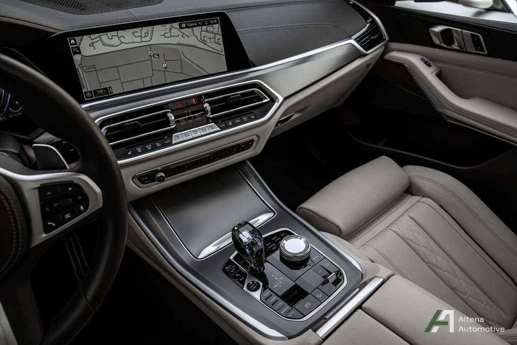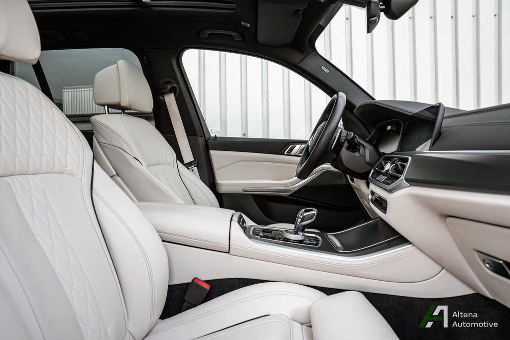Soms zie je een auto die niet schreeuwt, maar fluistert. Een fluister van ultieme klasse, van verfijning in elk detail. Deze X5 45e combineert de diepe, tijdloze glans van Carbonschwarz metallic met een interieur dat je omarmt in Elfenbeinweiß Merino leder – zacht, puur en elegant.